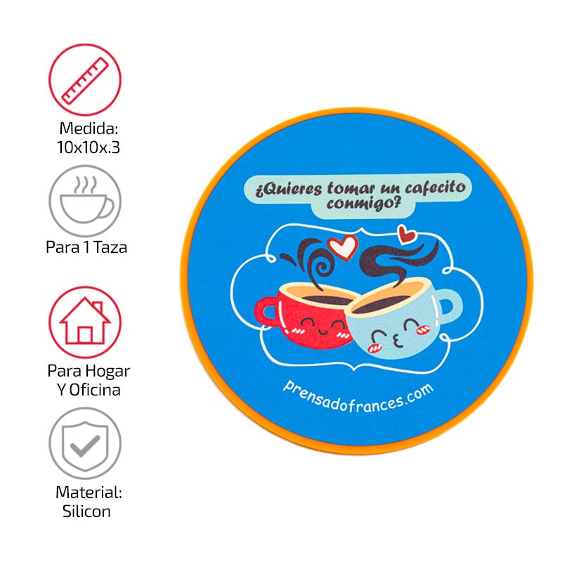 Tienen un espesor de 0.3 cm y un diámetro de 10 cm, se adaptan a la mayoría de tazas, permanece sobre la mesa, ya que la parte inferior de nuestro salvamanteles está diseñada con una zona especial de alta resistencia al deslizamiento para garantizar un excelente agarre sobre la mesa.